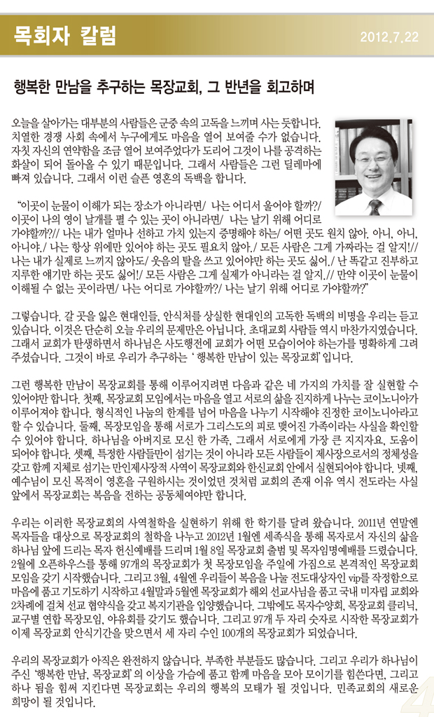 ¿ì¸®°¡ Ãß±¸ÇÏ´Â ¸ñÀ屳ȸ, ¼¼»óÀÇ Èñ¸Á - ¹ÚÁ¤¼ö¸ñ»ç