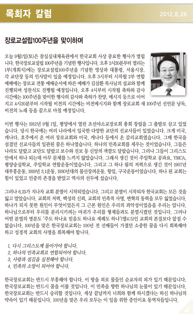 Àå·Î±³È¸ 100ÁÖ³âÀ» ¸ÂÀÌÇÏ¿©