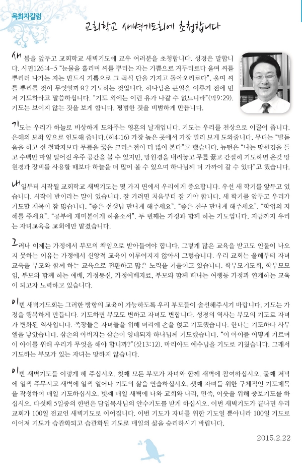 ±³È¸Çб³ »õº®±âµµÈ¸¿¡ ÃÊûÇÕ´Ï´Ù[2015.2.22]