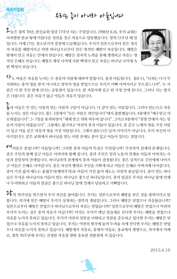 ¿ì¸®´Â Á¾ÀÌ ¾Æ´Ï¶ó ¾ÆµéÀÔ´Ï´Ù[2015.8.16]