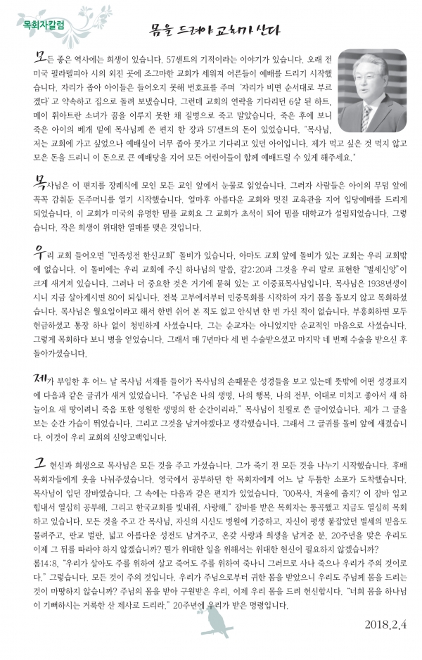 ¸öÀ» µå·Á¾ß ±³È¸°¡ »ê´Ù[2018.2.4]