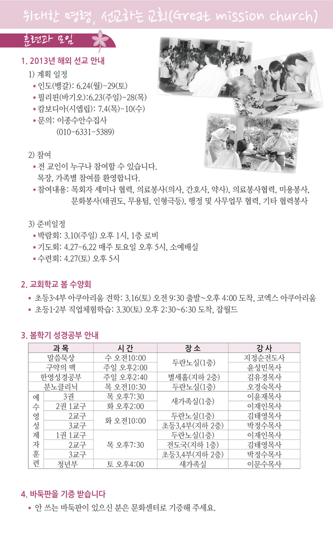 2013³â4¿ù ù°ÁÖ(4/7)¿¹¹è, ±³È¸¼Ò½Ä
