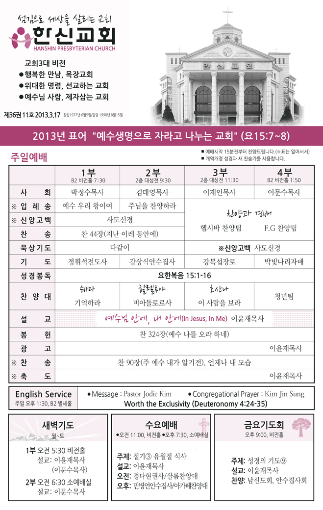 2013³â4¿ù ù°ÁÖ(4/7)¿¹¹è, ±³È¸¼Ò½Ä