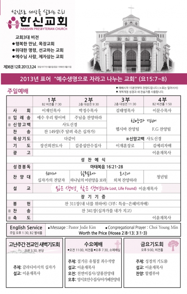 2013³â4¿ù ù°ÁÖ(4/7)¿¹¹è, ±³È¸¼Ò½Ä