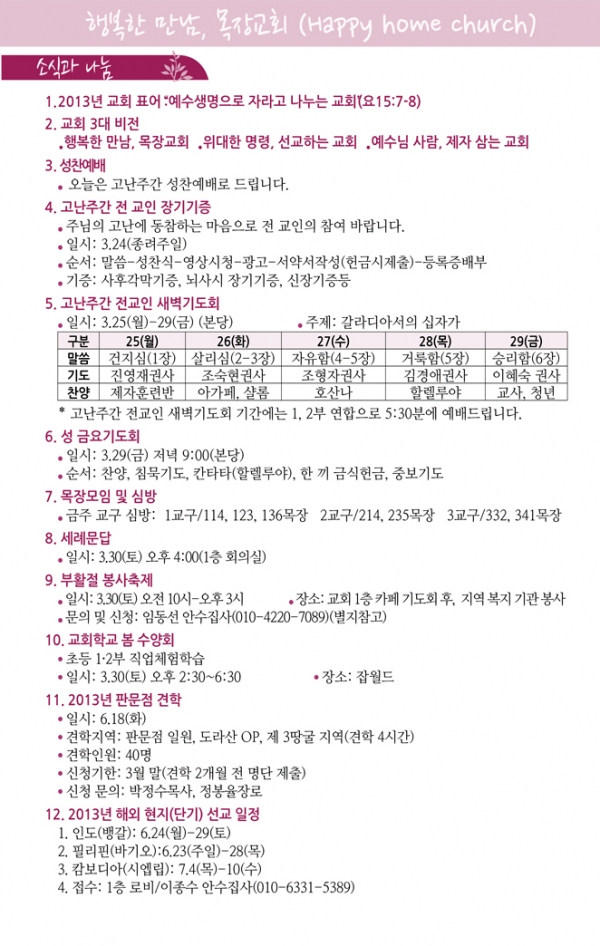 2013³â3¿ù ¼Â°ÁÖ(3/24)¿¹¹è, ±³È¸¼Ò½Ä |