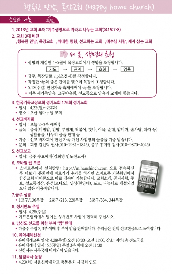 2013³â4¿ù ³Ý°ÁÖ(4/28)¿¹¹è, ±³È¸¼Ò½Ä