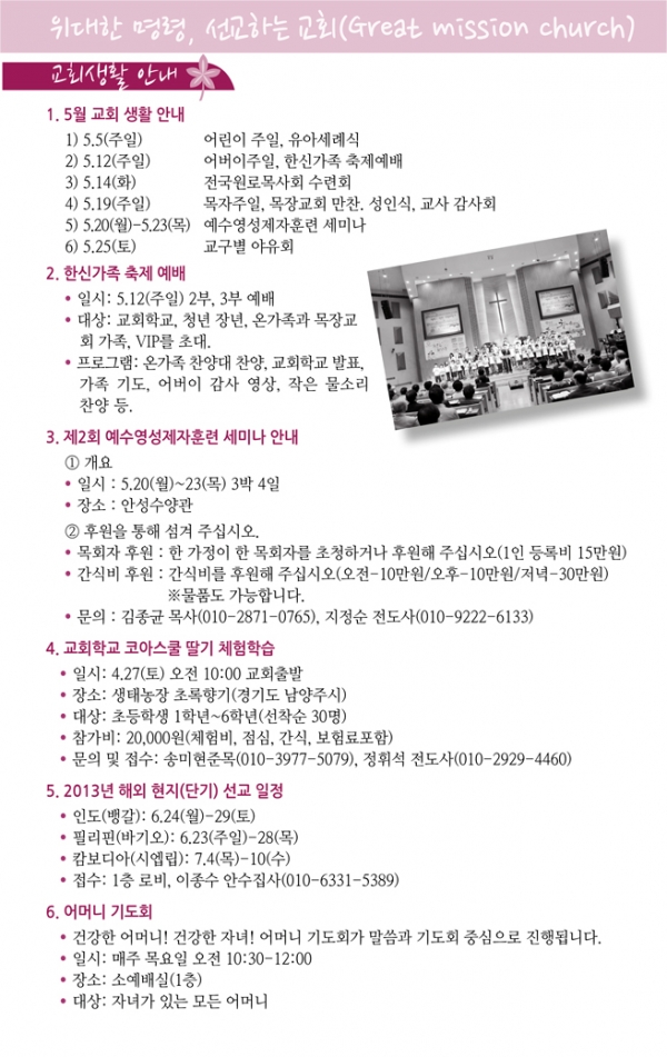 2013³â5¿ù ù°ÁÖ(5/5)¿¹¹è, ±³È¸¼Ò½Ä