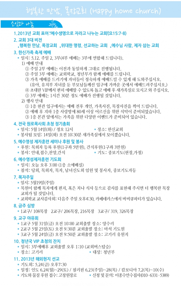 2013³â5¿ù ù°ÁÖ(5/5)¿¹¹è, ±³È¸¼Ò½Ä