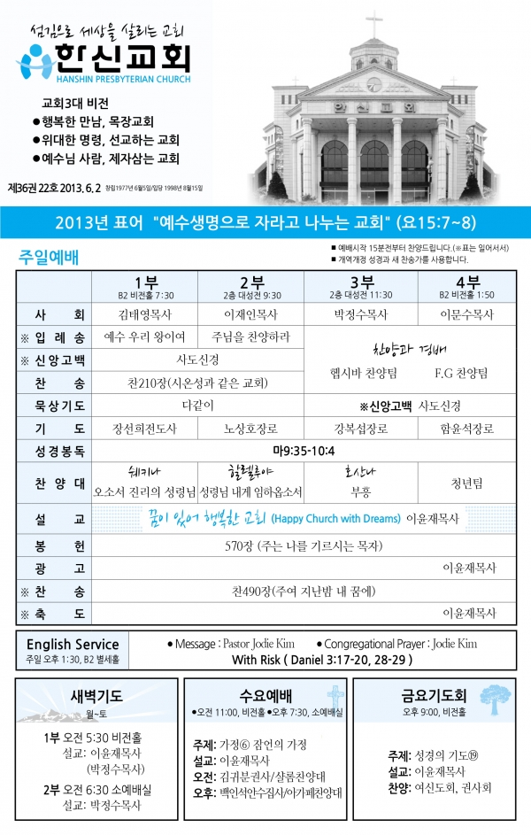 2013³â6¿ù ù°ÁÖ(6/2)¿¹¹è, ±³È¸¼Ò½Ä |
