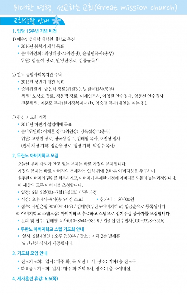 2013³â6¿ù ¼Â°ÁÖ(6/16)¿¹¹è, ±³È¸¼Ò½Ä