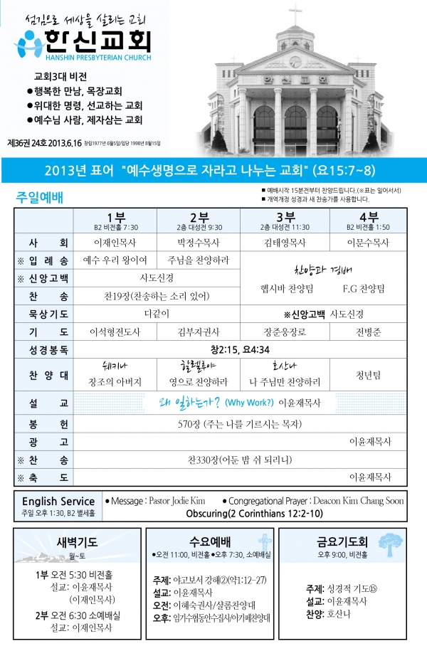 2013³â6¿ù ¼Â°ÁÖ(6/16)¿¹¹è, ±³È¸¼Ò½Ä |