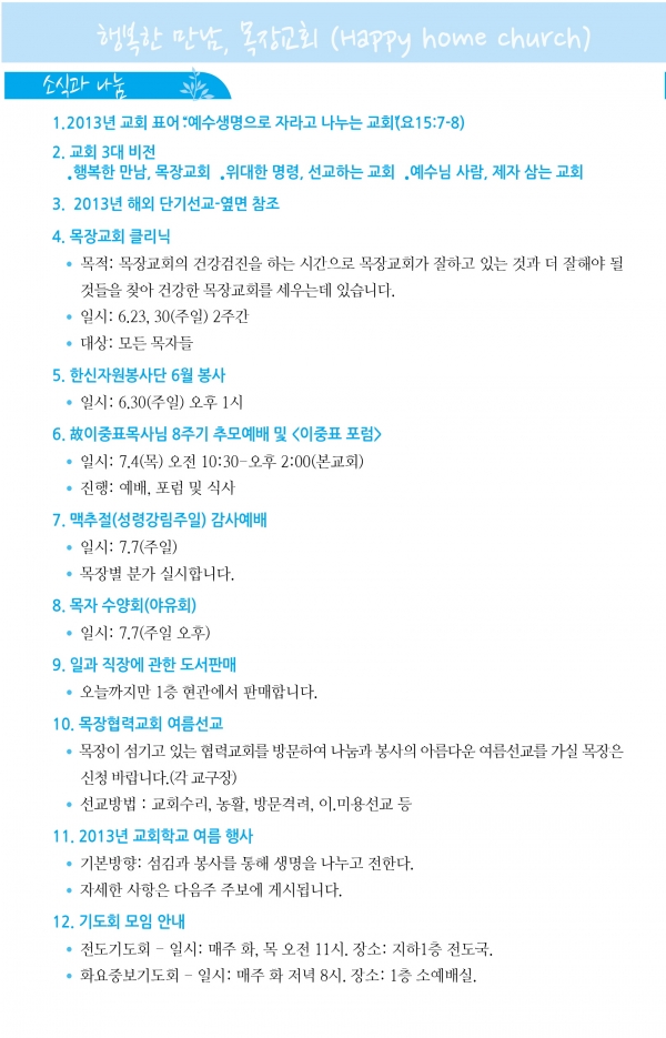 2013³â6¿ù ´Ù¼¸Â°ÁÖ(6/30)¿¹¹è, ±³È¸¼Ò½Ä