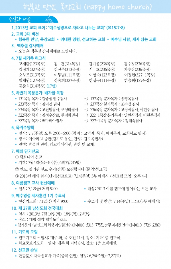 2013³â7¿ù ù°ÁÖ(7/7)¿¹¹è, ±³È¸¼Ò½Ä |