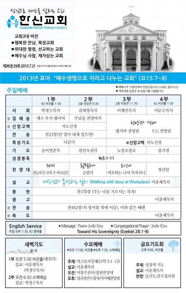 2013³â7¿ù ¼Â°ÁÖ(7/21)¿¹¹è, ±³È¸¼Ò½Ä |
