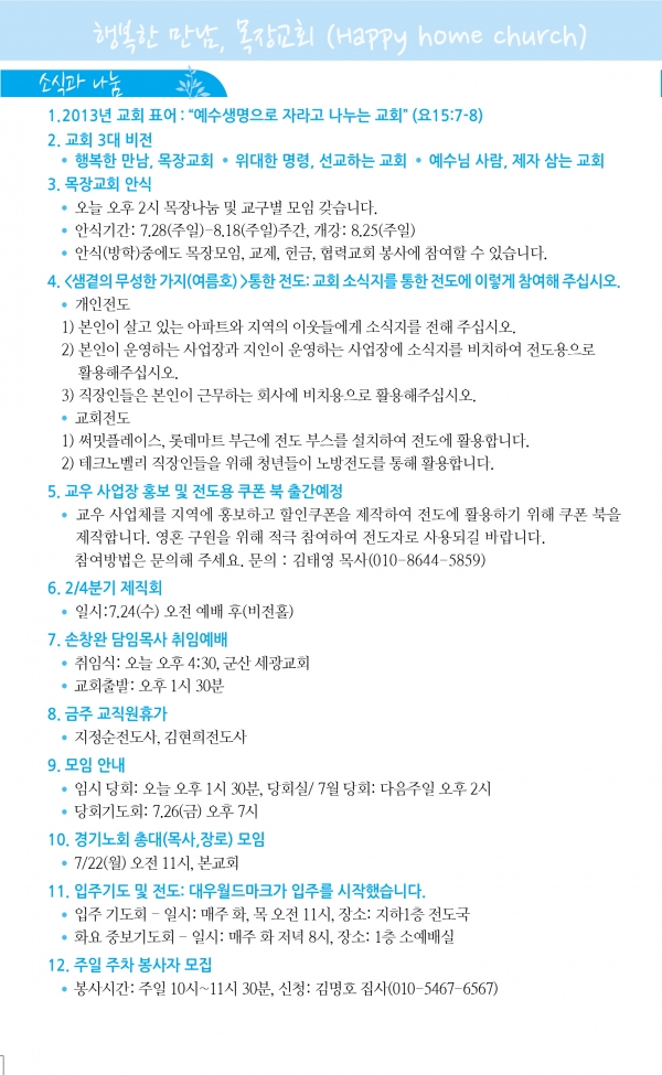 2013³â7¿ù ù°ÁÖ(7/7)¿¹¹è, ±³È¸¼Ò½Ä
