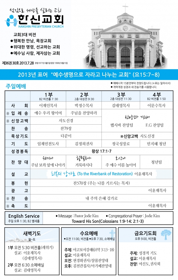 2013³â7¿ù ³Ý°ÁÖ(7/28)¿¹¹è, ±³È¸¼Ò½Ä |