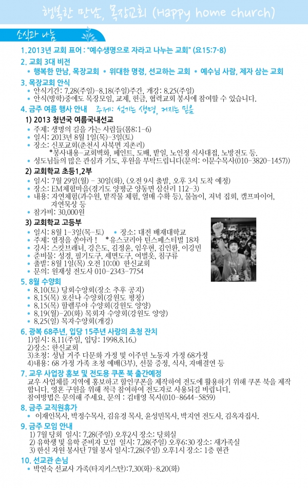 2013³â7¿ù ù°ÁÖ(7/7)¿¹¹è, ±³È¸¼Ò½Ä