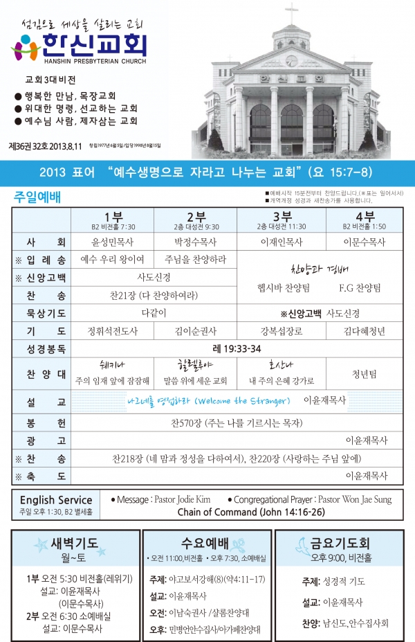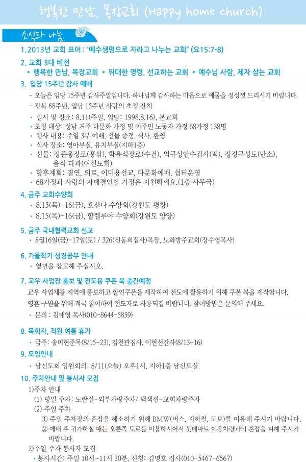2013³â8¿ù ù°ÁÖ(8/4)¿¹¹è, ±³È¸¼Ò½Ä