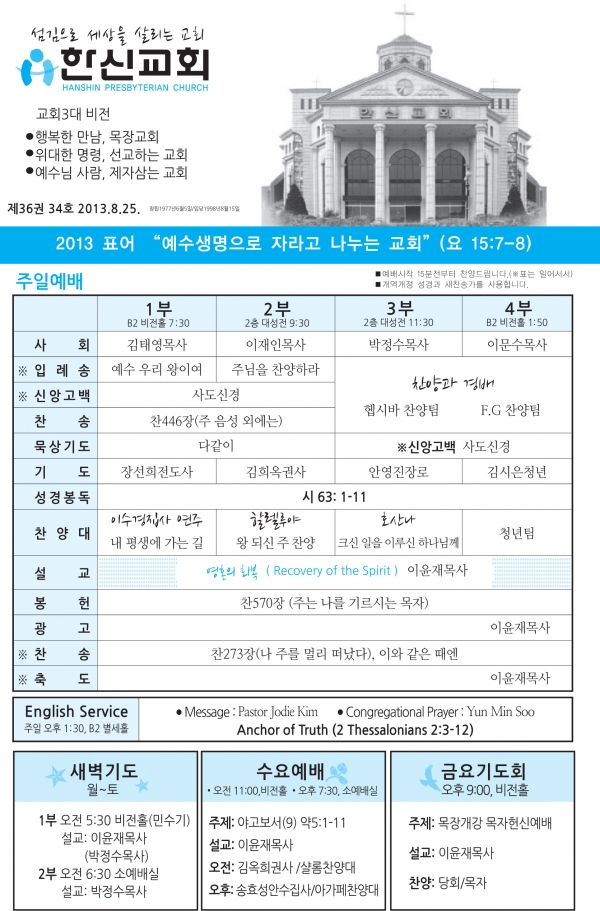 2013³â8¿ù ù°ÁÖ(8/4)¿¹¹è, ±³È¸¼Ò½Ä