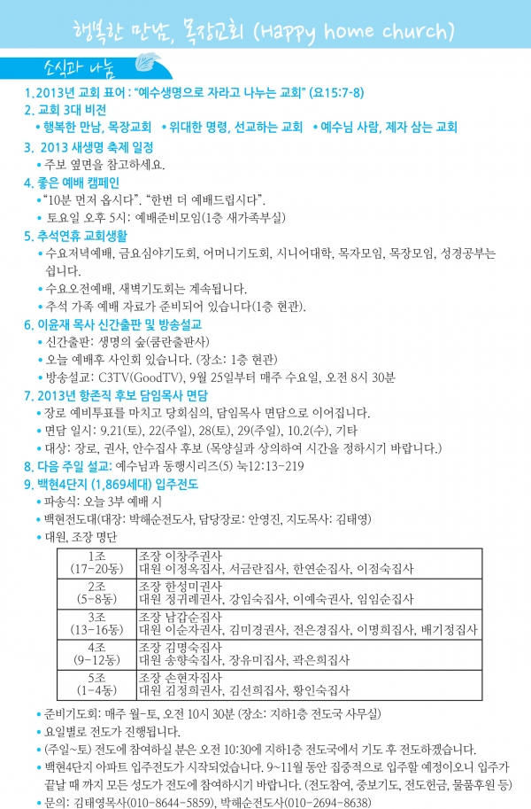2013³â9¿ù ù°ÁÖ(9/1)¿¹¹è, ±³È¸¼Ò½Ä