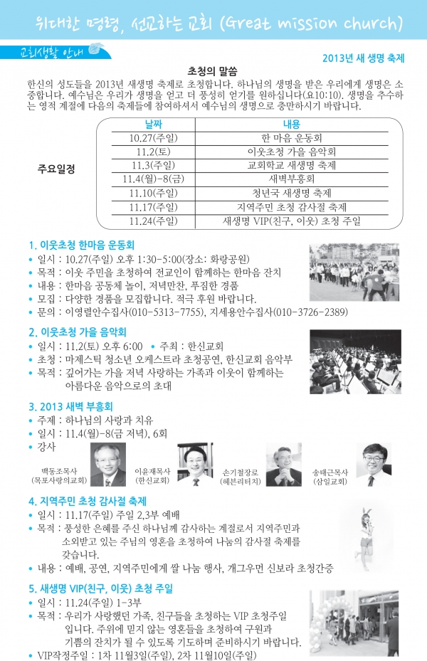 2013³â10¿ù ù°ÁÖ(10/6)¿¹¹è, ±³È¸¼Ò½Ä