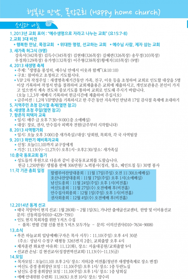 2013³â11¿ù µÑ°ÁÖ(11/10)¿¹¹è, ±³È¸¼Ò½Ä |