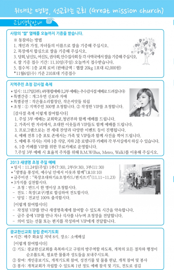 2013³â11¿ù ¼Â°ÁÖ(11/17)¿¹¹è, ±³È¸¼Ò½Ä