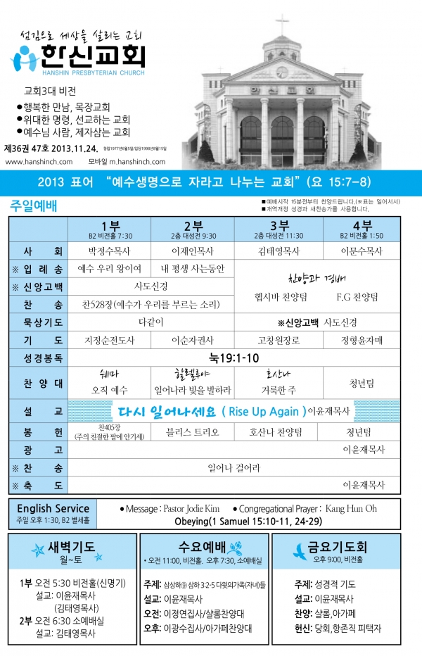 2013³â11¿ù ³Ý°ÁÖ(11/24)¿¹¹è, ±³È¸¼Ò½Ä |