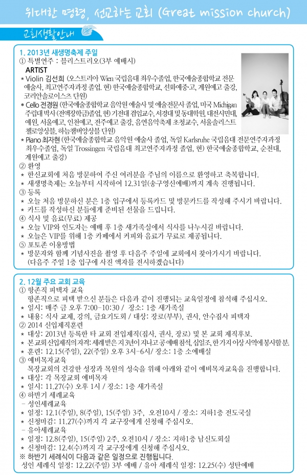 2013³â12¿ù ù°ÁÖ(12/1)¿¹¹è, ±³È¸¼Ò½Ä