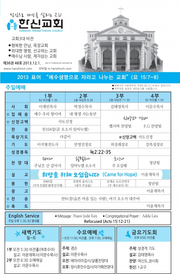 2013³â12¿ù ¼Â°ÁÖ(12/15)¿¹¹è, ±³È¸¼Ò½Ä