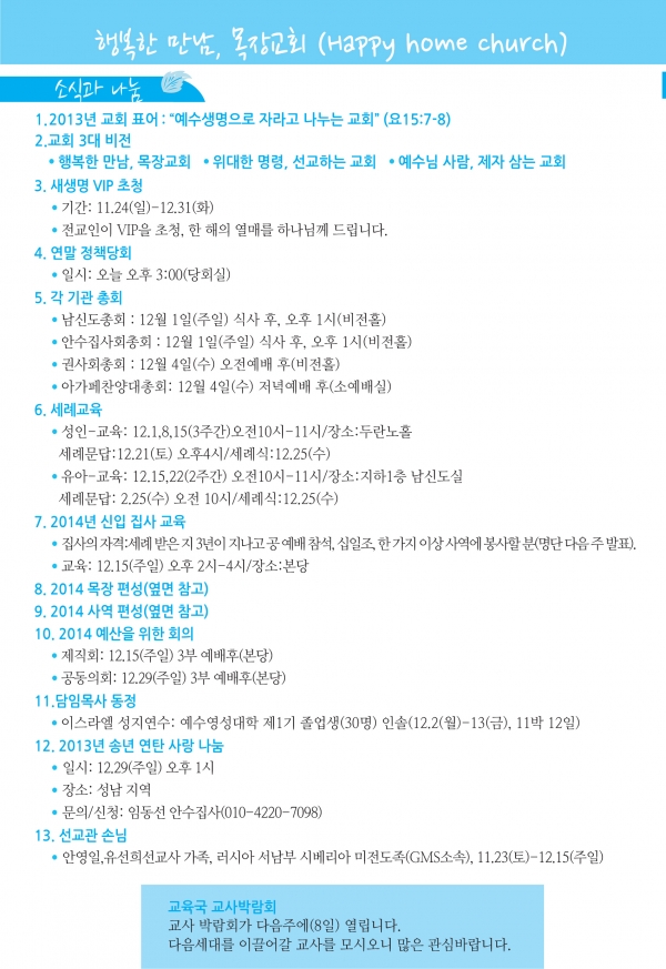 2013³â12¿ù ù°ÁÖ(12/1)¿¹¹è, ±³È¸¼Ò½Ä |