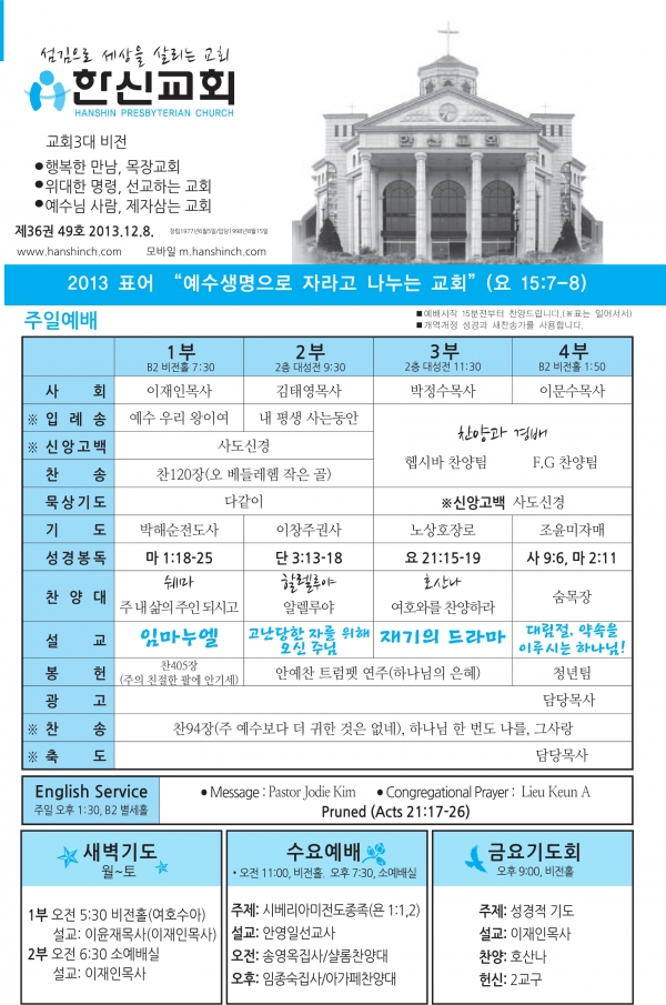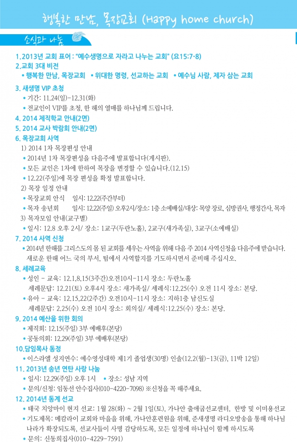 2013³â12¿ù ù°ÁÖ(12/1)¿¹¹è, ±³È¸¼Ò½Ä
