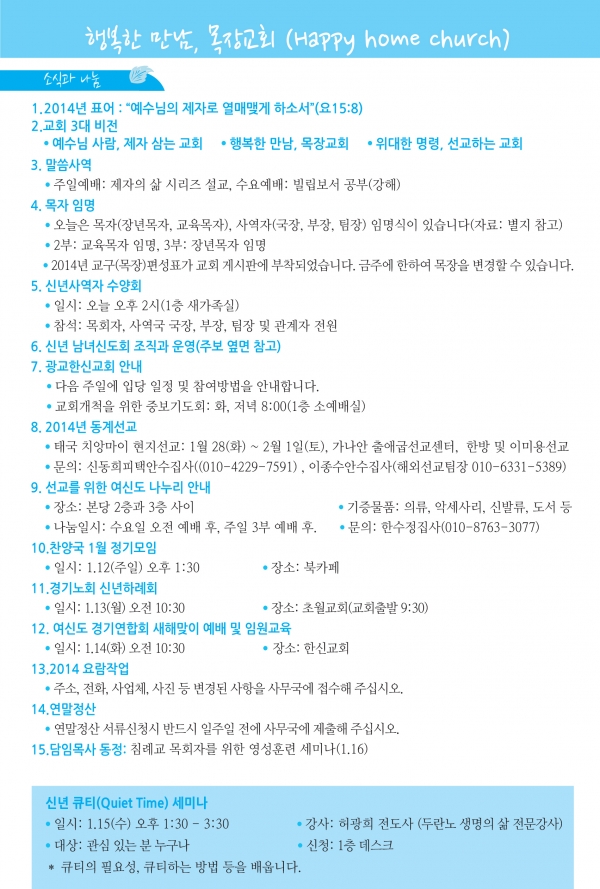 2014³â1¿ù ù°ÁÖ(1/5)¿¹¹è, ±³È¸¼Ò½Ä