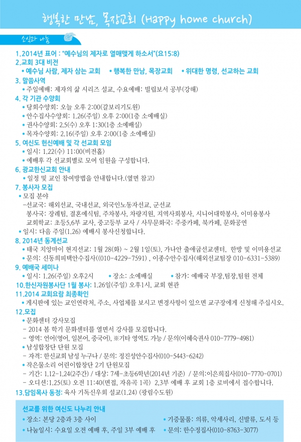 2014³â1¿ù ¼Â°ÁÖ(1/19)¿¹¹è, ±³È¸¼Ò½Ä |