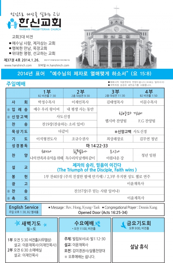 2014³â1¿ù ³Ý°ÁÖ(1/26)¿¹¹è, ±³È¸¼Ò½Ä |