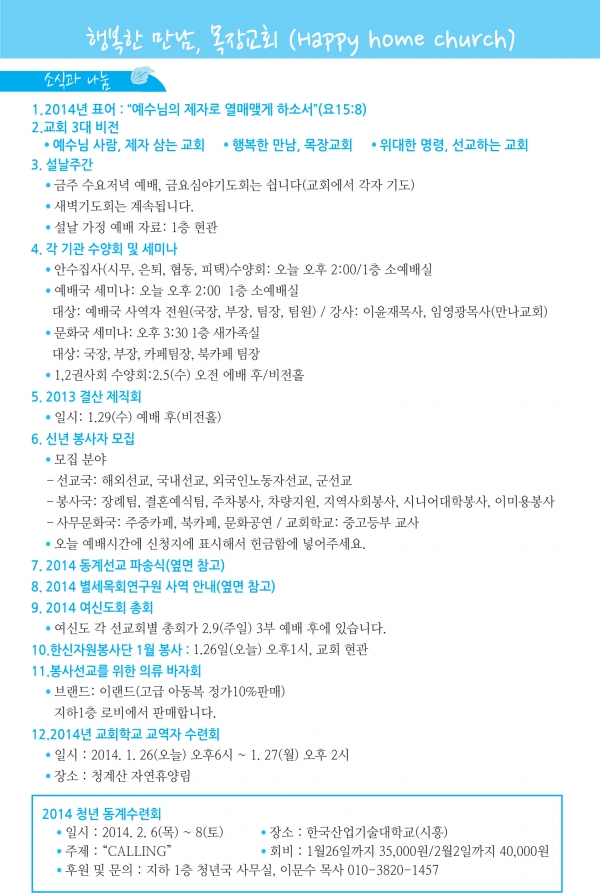2014³â1¿ù ¼Â°ÁÖ(1/19)¿¹¹è, ±³È¸¼Ò½Ä