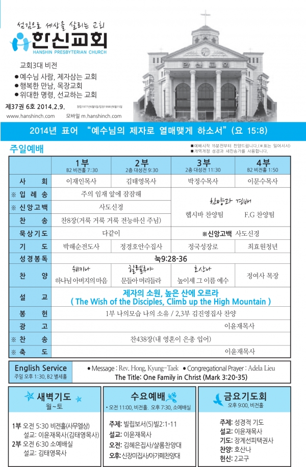 2014³â2¿ù µÑ°ÁÖ(2/9)¿¹¹è, ±³È¸¼Ò½Ä |