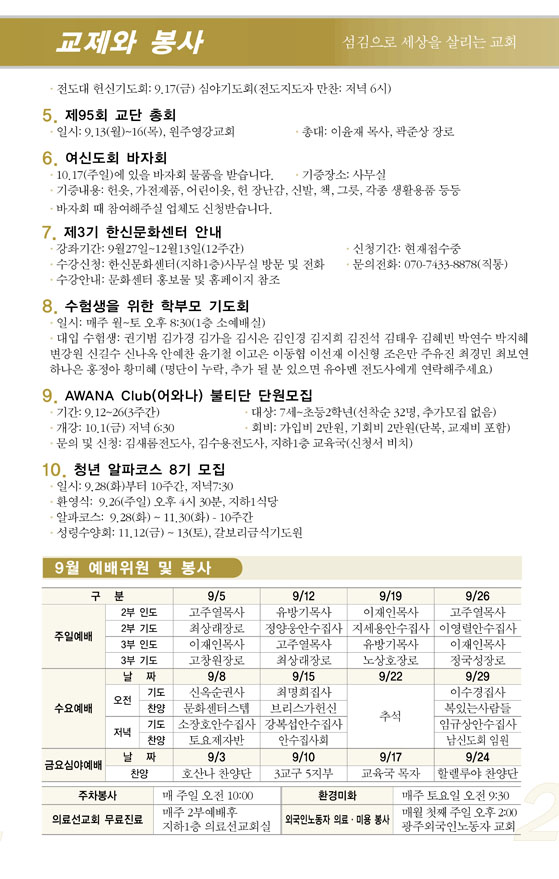 2010³â9¿ù µÑ°ÁÖ(9/12) ¿¹¹è, ±³È¸¼Ò½Ä |