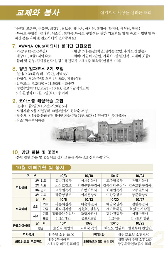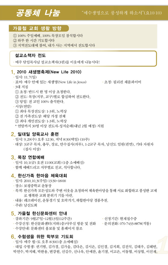 2010³â9¿ù ù°ÁÖ(9/05) ¿¹¹è, ±³È¸¼Ò½Ä