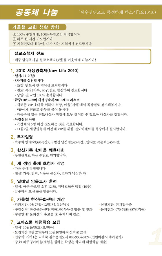 2010³â9¿ù ù°ÁÖ(9/05) ¿¹¹è, ±³È¸¼Ò½Ä