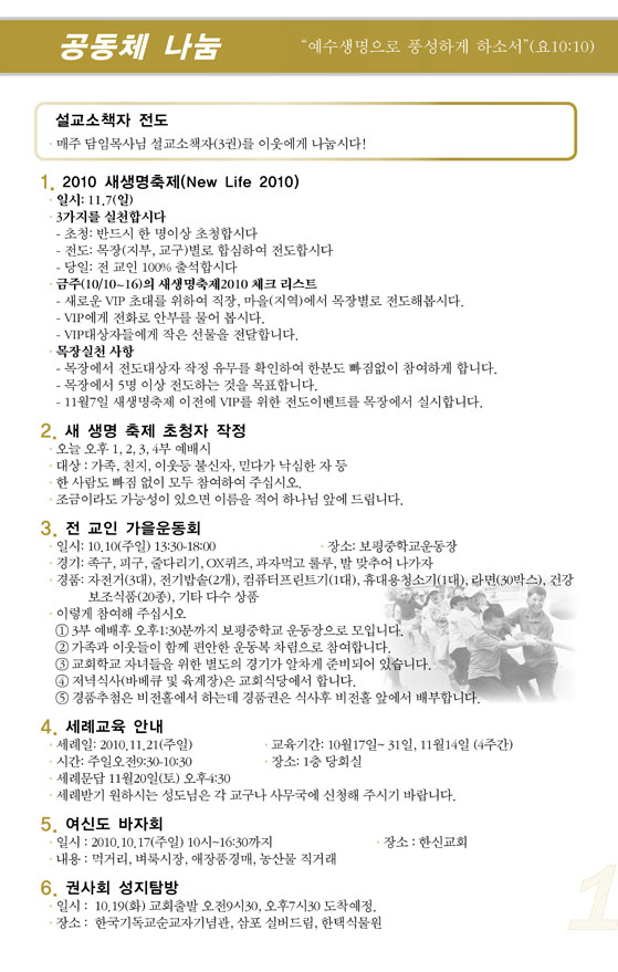 2010³â10¿ù µÑ°ÁÖ(10/10) ¿¹¹è, ±³È¸¼Ò½Ä |
