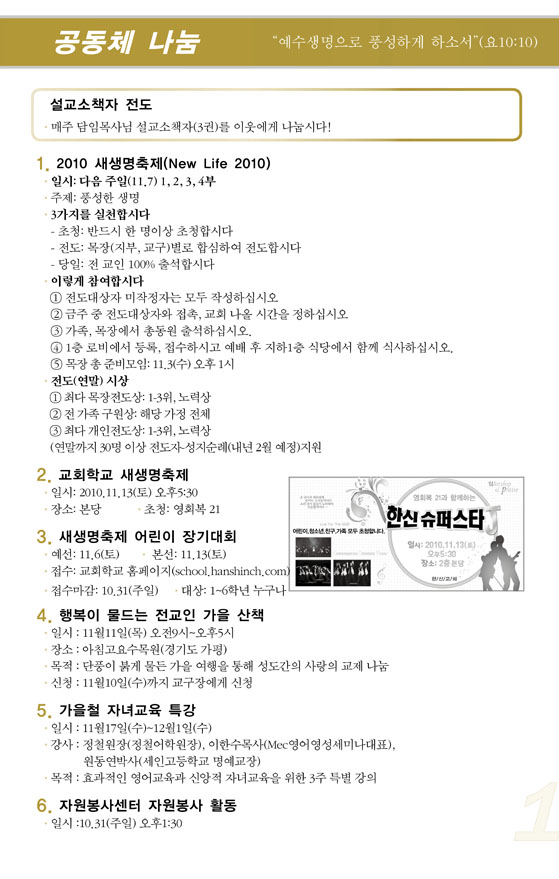 2010³â10¿ù ³Ý°ÁÖ(10/24) ¿¹¹è, ±³È¸¼Ò½Ä