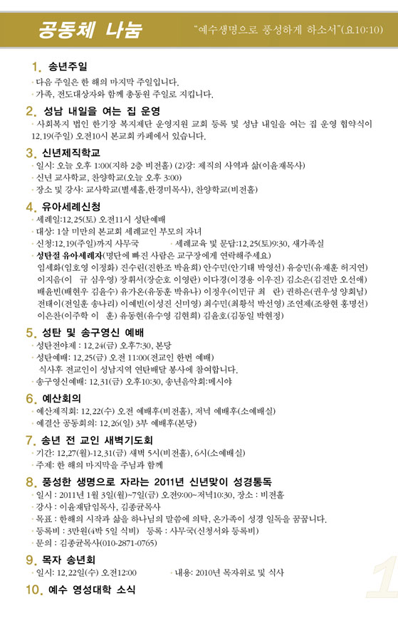 2010³â12¿ùù°ÁÖ(12/05) ¿¹¹è, ±³È¸¼Ò½Ä