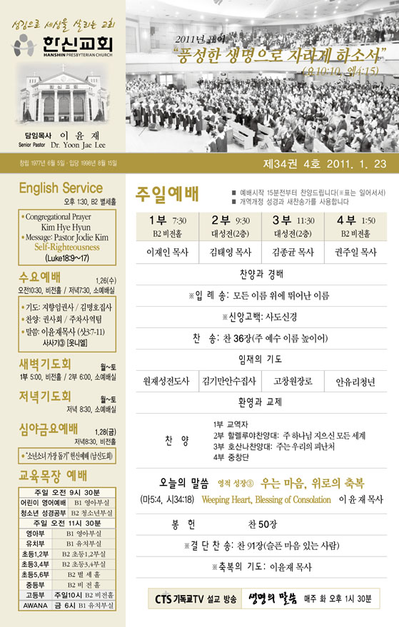 2011³â1¿ù ´Ù¼¸Â°ÁÖ(1/30) ¿¹¹è, ±³È¸¼Ò½Ä