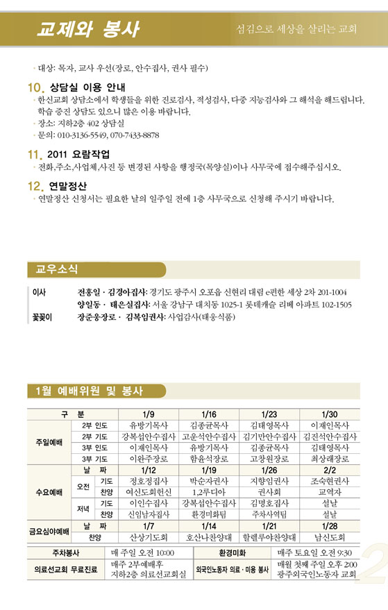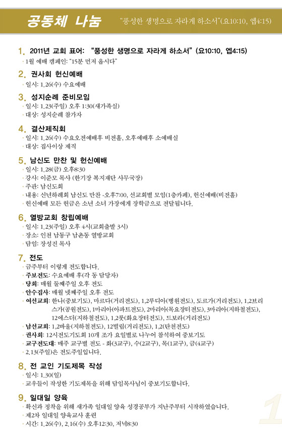 2011³â1¿ù ù°ÁÖ(1/2) ¿¹¹è, ±³È¸¼Ò½Ä