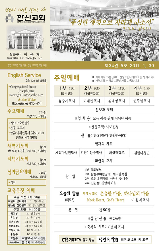 2011³â1¿ù ´Ù¼¸Â°ÁÖ(1/30) ¿¹¹è, ±³È¸¼Ò½Ä |