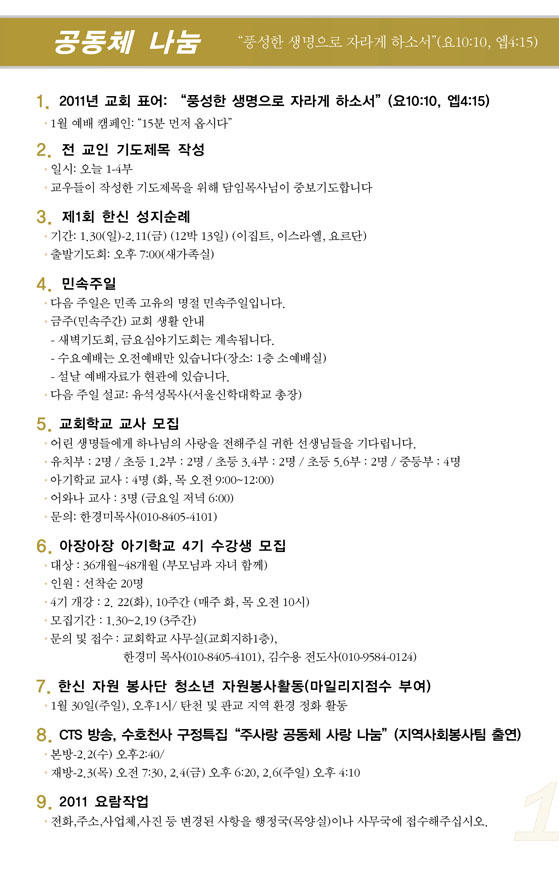 2011³â1¿ù ù°ÁÖ(1/2) ¿¹¹è, ±³È¸¼Ò½Ä