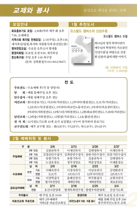 2011³â2¿ù ¼Â°ÁÖ(2/20) ¿¹¹è, ±³È¸¼Ò½Ä
