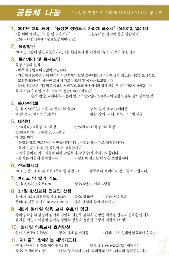 2011³â1¿ù ù°ÁÖ(1/2) ¿¹¹è, ±³È¸¼Ò½Ä