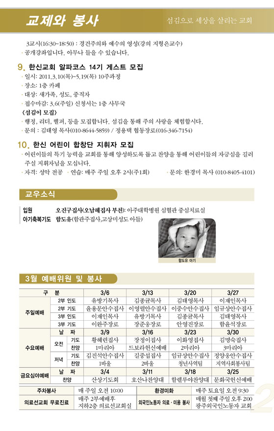 2011³â3¿ù ù°ÁÖ(3/6) ¿¹¹è, ±³È¸¼Ò½Ä |